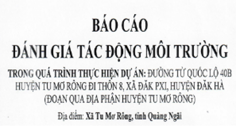 Admin - Thứ năm, 18/12/2025 Thông tin tham vấn ý kiến cộng đồng về nội dung báo cáo đánh giá tác động môi trường của Dự án Đường từ Quốc lộ 40B huyện Tu Mơ Rông đi thôn 8, xã Đăk Pxi, huyện Đăk Hà (Đoạn qua địa phận huyện Tu Mơ Rông) Xem thêm