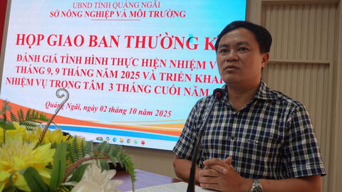 Admin - Thứ năm, 02/10/2025 Sở Nông nghiệp và Môi trường họp giao ban đánh giá kết quả 9 tháng, triển khai nhiệm vụ trọng tâm cuối năm 2025 Xem thêm