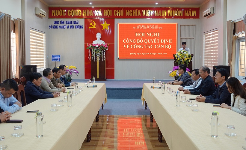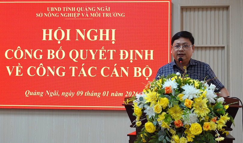Tại Hội nghị, thay mặt lãnh đạo Sở, đồng chí Phạm Đức Thọ, Trưởng Phòng Tổ chức cán bộ Sở công bố Quyết định số 09/QĐ-SNNMT ngày 06/01/2026 của Giám đốc Sở Nông nghiệp và Môi trường về việc bổ nhiệm ông Đoàn Hùng Chương, Phó Trưởng phòng phụ trách Phòng Khoáng sản, giữ chức vụ Trưởng phòng Khoáng sản, Sở Nông nghiệp và Môi trường tỉnh Quảng Ngãi, thời hạn bổ nhiệm 05 năm, kể từ ngày 07/01/2026.